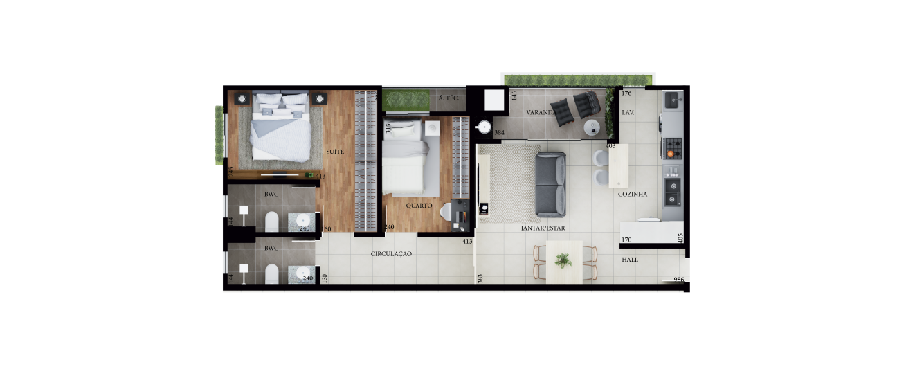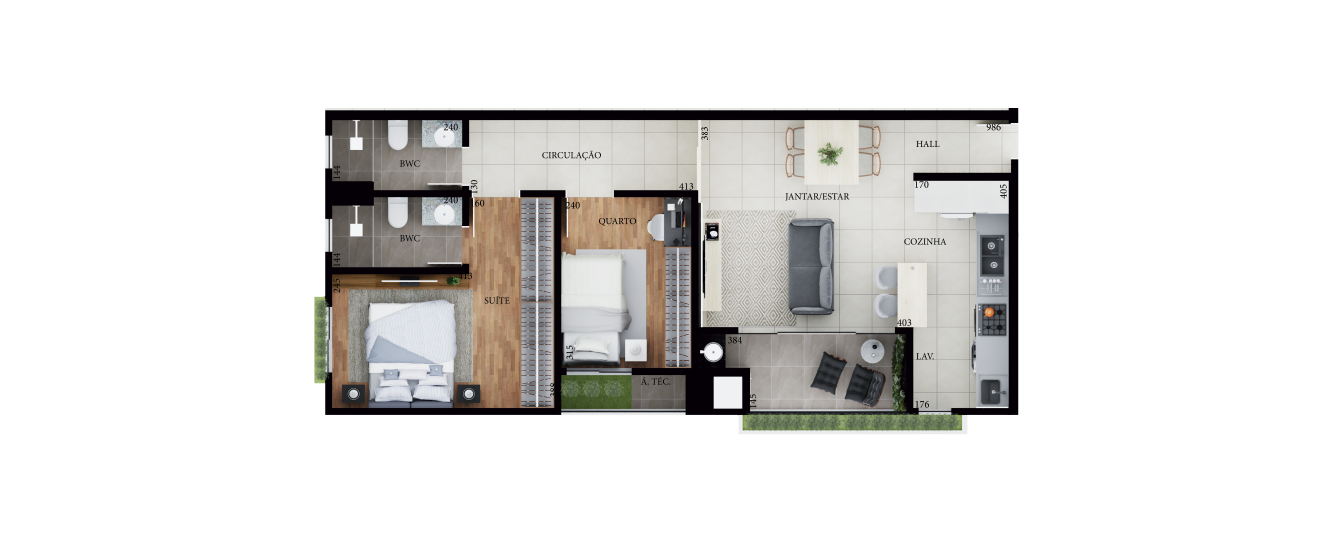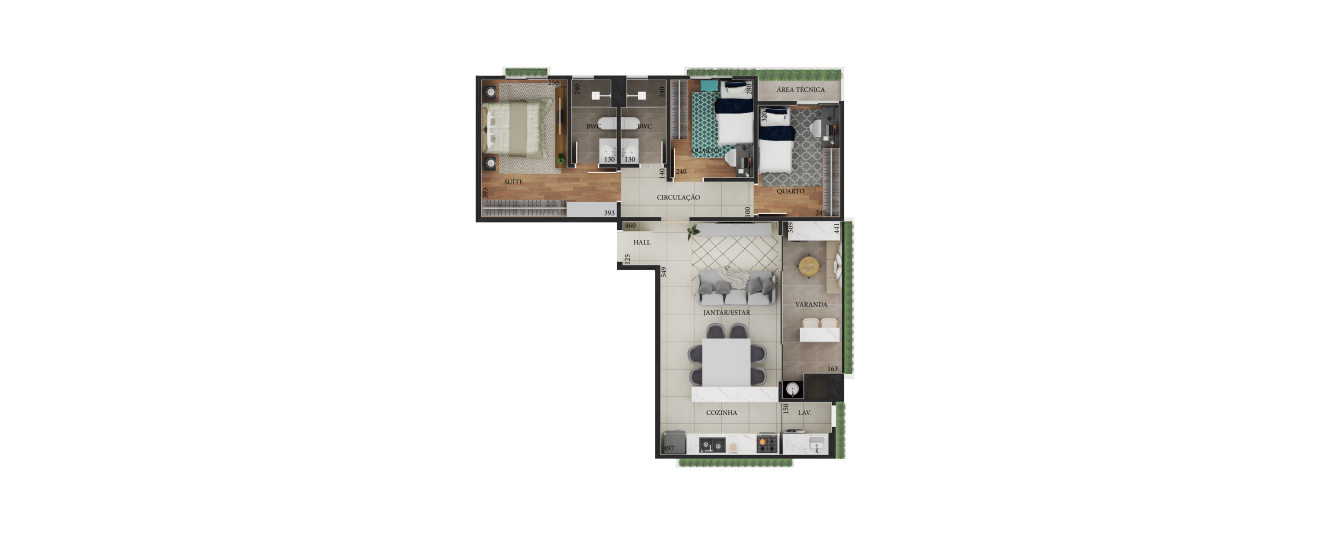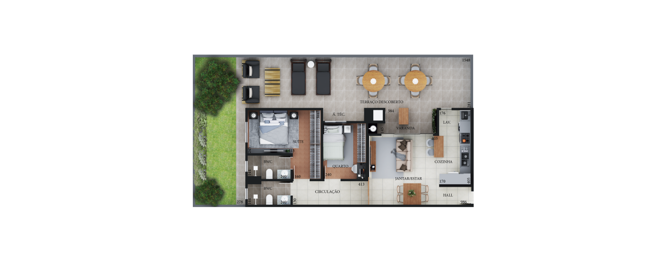 Infraestrutura entregue com pisos nas áreas úmidas e sociais