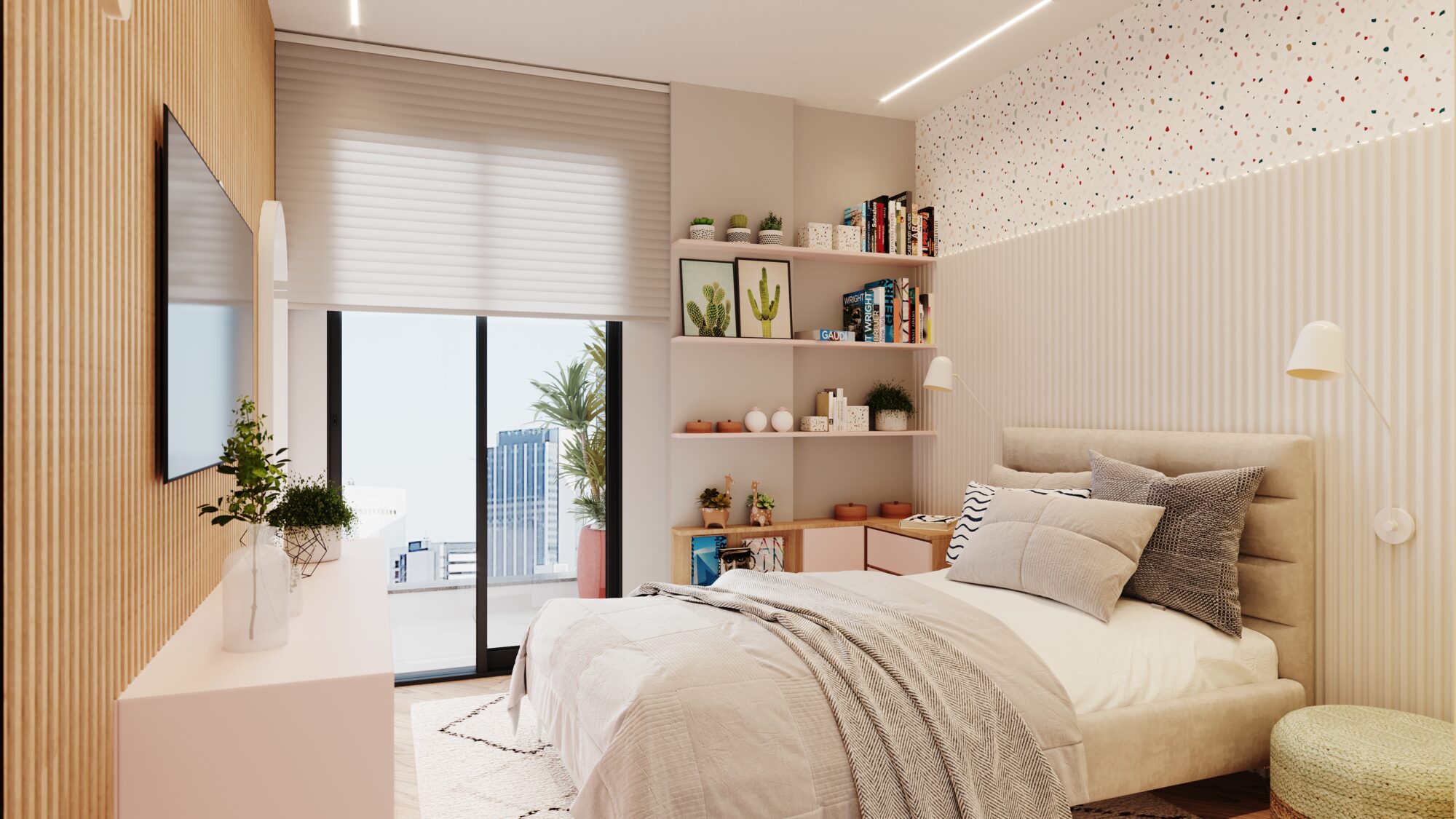 Persianas automatizadas embutidas nas esquadrias dos quartos