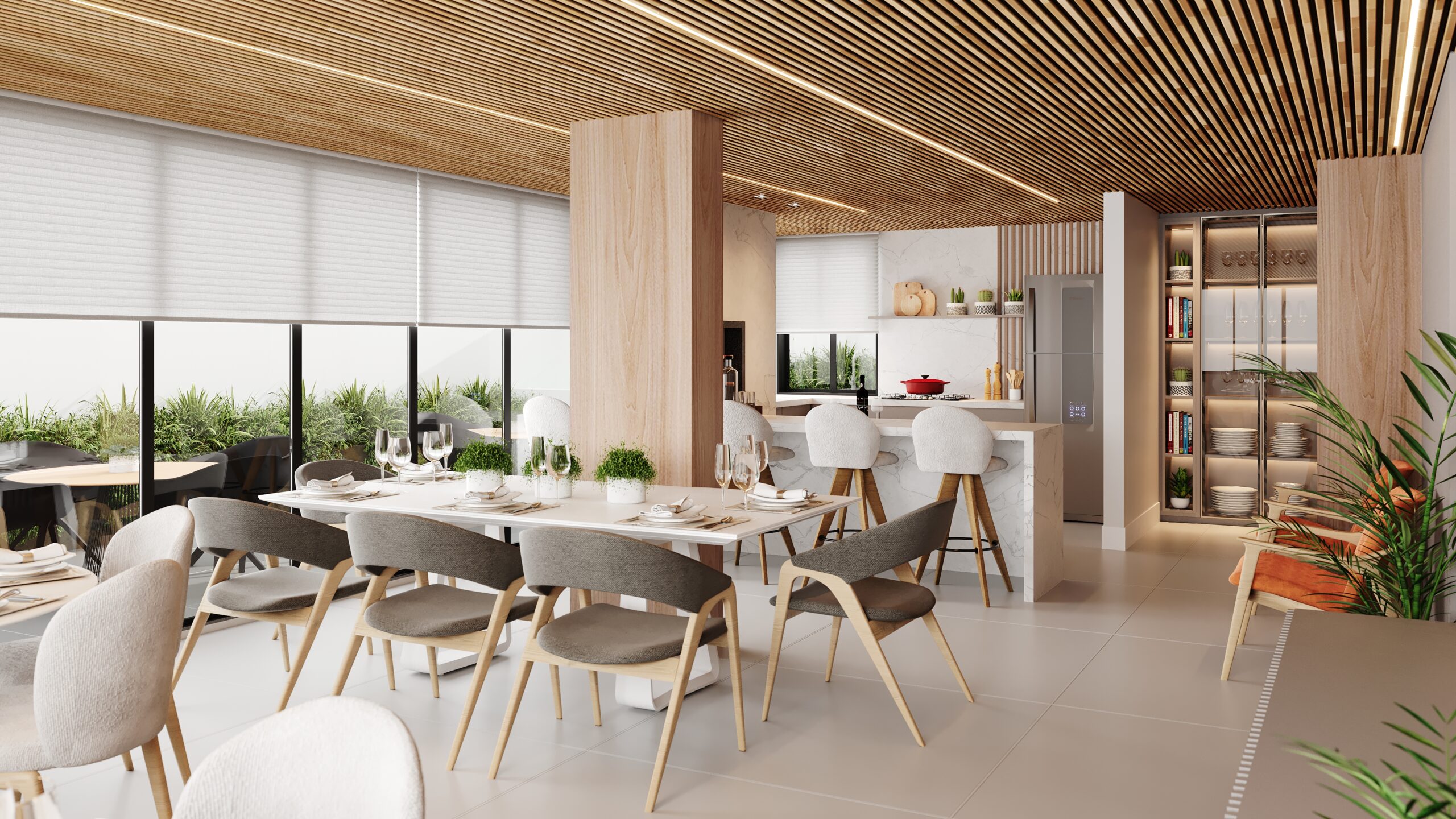 Paredes largas entre as unidades e o perímetro externo para melhorar a condição acústica